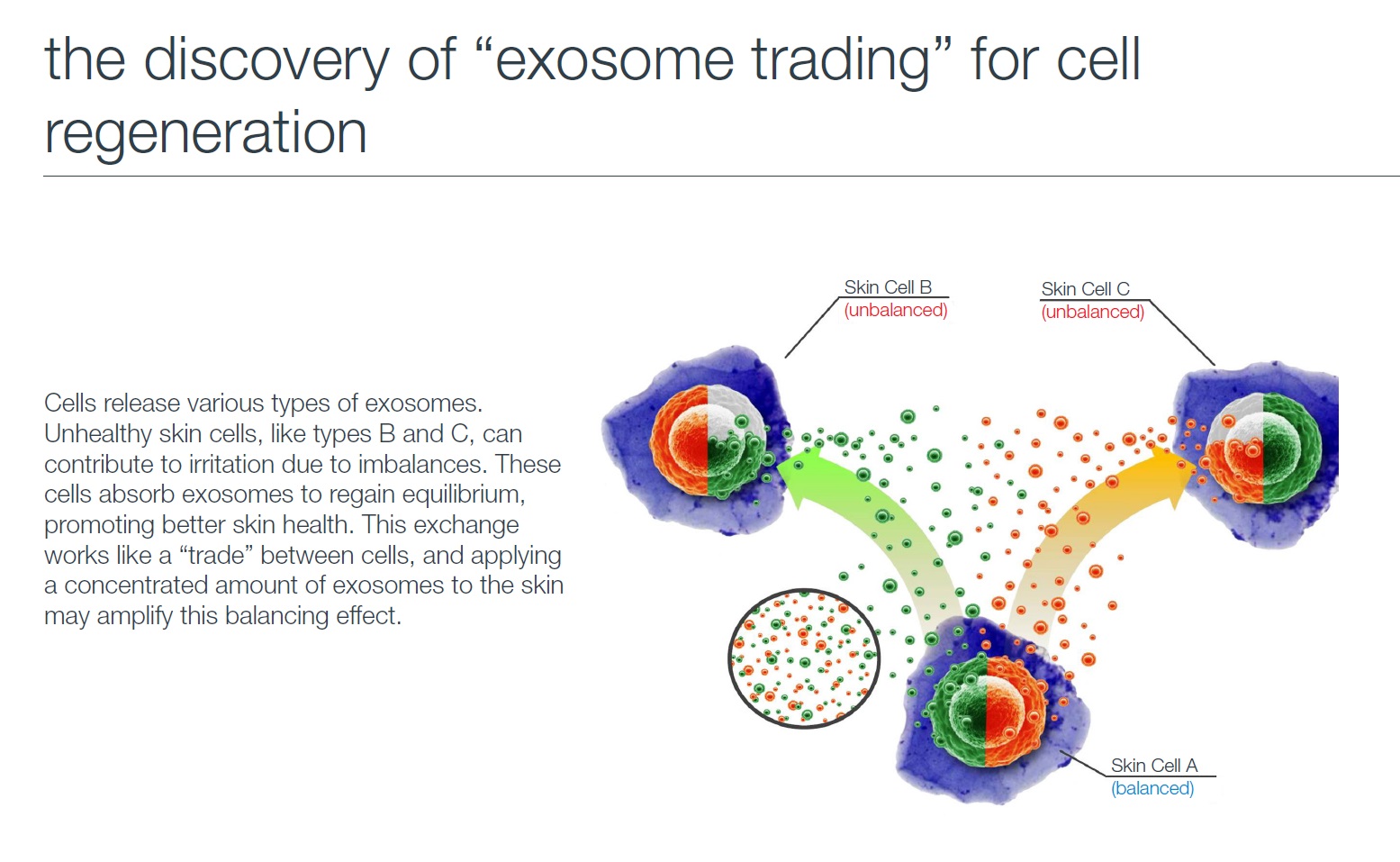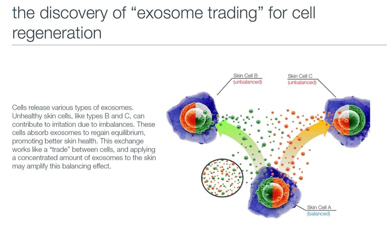 Exosomes are are small vesicles derived from stem cells that serve as cellular messengers. They penetrate the skin to activate various cell functions, making them promising in cosmetics, skincare, tissue regeneration, and dermatological treatments. Exosomes enhance the cellular environment by regulating genes and guiding cell behavior, ultimately benefiting skin health. They can also help reduce the appearance of inflammation, making them an effective option for post-treatment recovery.