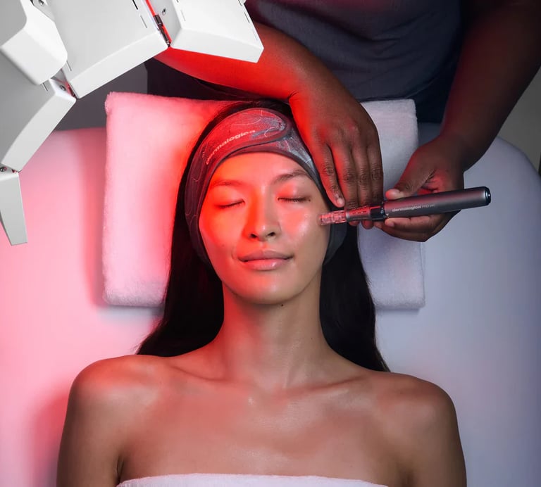 Dermalogica's Pro Microneedling is a minimally invasive procedure that uses fine needles to make miniscule, evenly-spaced micro-injuries to the skin. This triggers the body’s wound healing process, stimulates healthy surrounding tissue to repair the damage, and brings the skin back to its healthiest looking state.